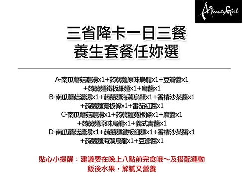 A Beauty Girl 降卡餐1天3餐養生組-商品介紹