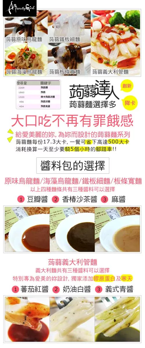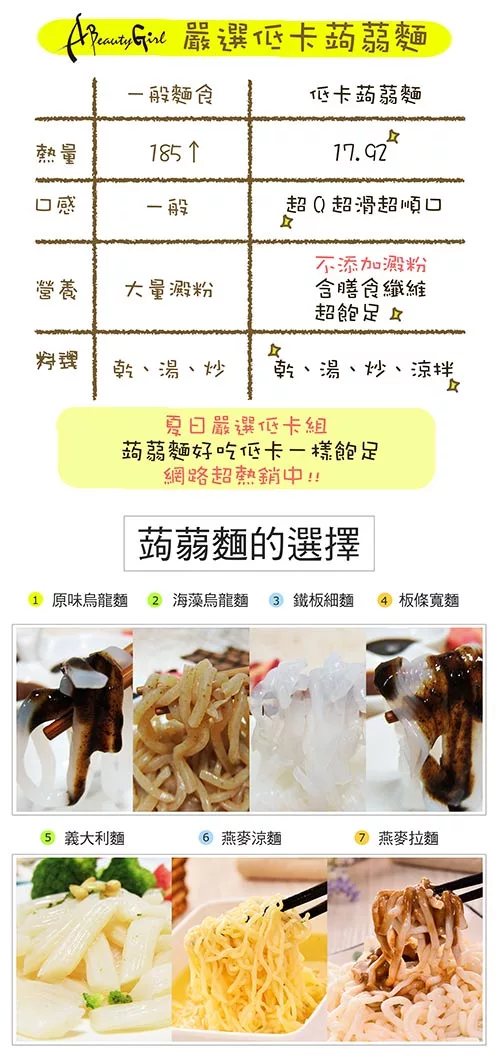 蒟蒻麵又具有大量的纖維素,可以有效控制每日的熱量攝取,又免挨餓!
